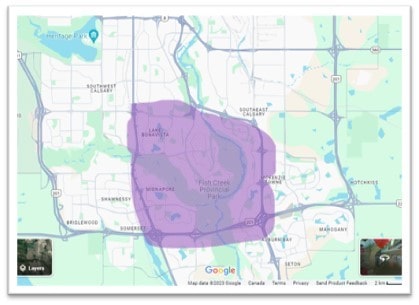 Their current residence is in Lake Bonavista, Calgary Alberta and today they have received word of the need to evacuate parts of the city. There is a wildfire in Fish Creek park that is billowing out of control, with an east wind pushing it. Presently Calgary is in drought conditions. The requested evacuation areas will be shown via a map in a real life situation, below is a faux example. It would look something similar to this (with a color coded legend showing fire location, and evacuation zones).