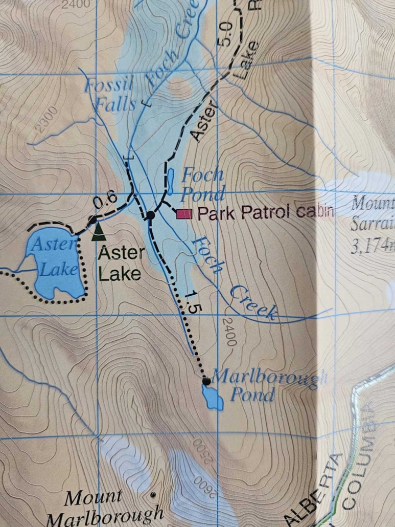 It was at this point that we knew we had done something wrong, because the look on this fellows face was priceless. “What waterfall?” he replied. He pulled out his map for us to look at and show us where we actually were. As our luck would have it, we had actually hiked approximately 5-6kms WEST towards Three Isle Lake from Upper K (having overshot our turn off trail by about 1km), instead of heading SOUTH towards Fossil Falls.