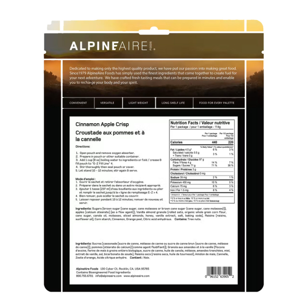 At ALPINEAIRE FOODS our passion for food is only exceeded by our thirst for adventure. We are dedicated to working with only the finest ingredients to deliver convenient, great tasting and nutritious meals. With an emphasis on quality, combined with the care that goes into every one of our products, you can count on ALPINEAIRE to fuel your next adventure.
