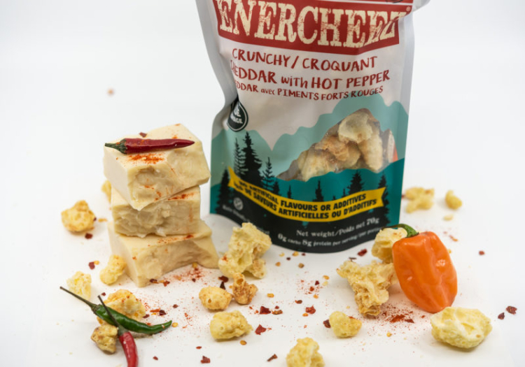 Premium crunchy Enercheez® is the NEW way to eat cheese that requires zero refrigeration! Enercheez® is delicately made from 100 % Canadian cheese from a small family-owned cheese company nestled in the British Columbian mountains.