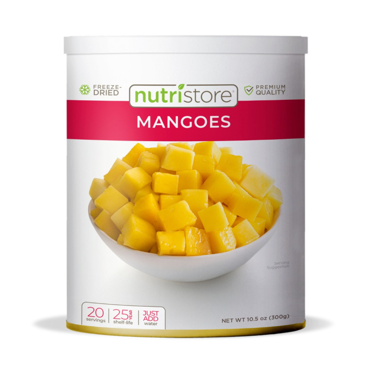 Soak 1 cup of Nutristore™ Mangoes in 1 cup of water until tender (1-3 minutes). Drain off extra water.