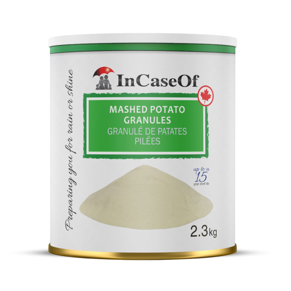 In Case Of Mashed Potato Granules are 100% Canadian grown potatoes. Washed, peeled, cooked and dried to preserve their natural texture, flavour, and consistency.