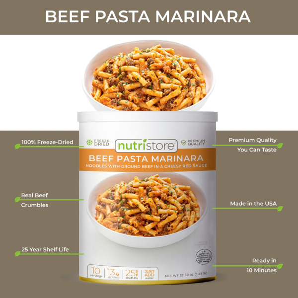 Nutristore Beef Pasta Marinara is more than just a survival food product; it symbolizes readiness and resilience. Its gourmet flavor, extended shelf life, and easy preparation offer the best of both worlds – the comfort of home-cooked meals from your youth and the reliability of emergency sustenance. Don't leave your safety and well-being to chance; choose Beef Pasta Marinara by Nutristore and stay prepared for whatever lies ahead.