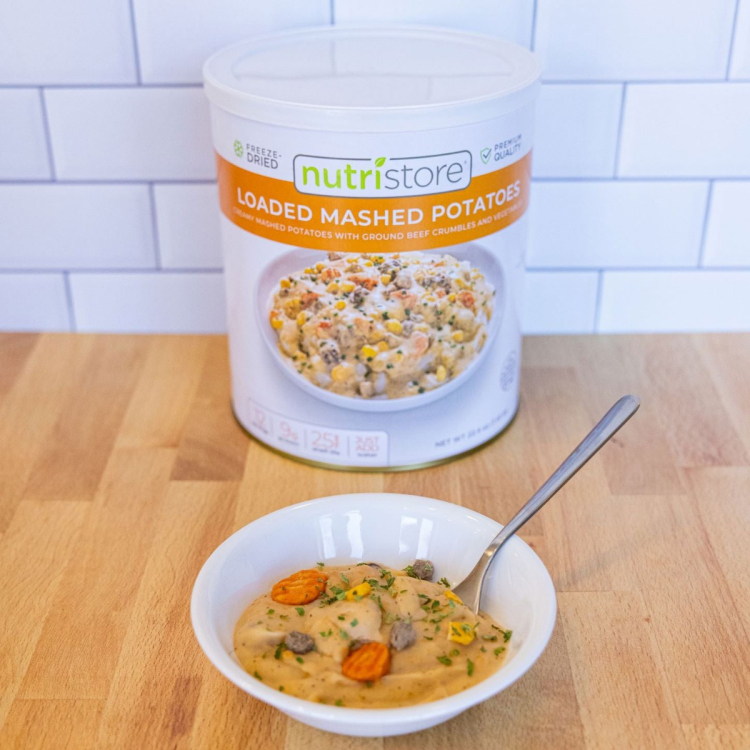 Nutristore™ Loaded Mashed Potato Dinner will be the new favorite around the dinner table! Filled with a delicious blend of potatoes, seasoned ground beef, cheddar cheese, carrots, corn and onion. Nutristore's goal is to bring meals with necessary nutrients and calories along with a great taste to your emergency storage, quick meal solutions for everyday or even your back country trips! With easy prep, this is an ideal addition to any pantry!