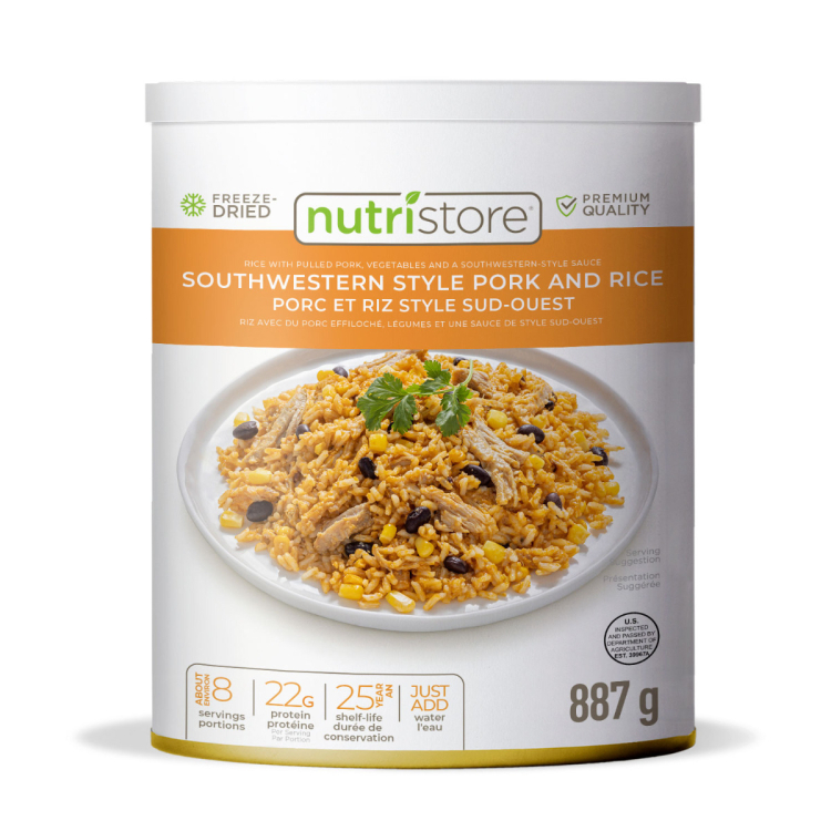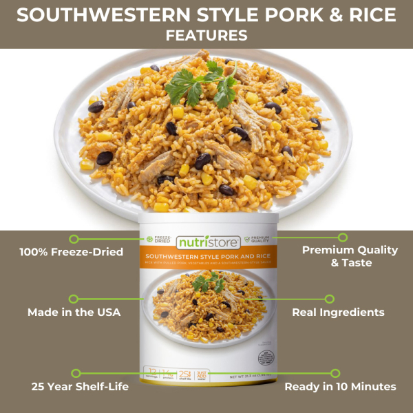 #1 - Nutristore Southwestern Style Pork and Rice is a delicious and nutritious meal that is perfect for anyone looking for a healthy and convenient meal option.