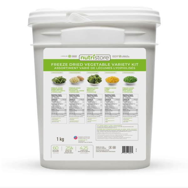 The Nutristore™ Freeze-dried Vegetable Variety Bucket is the perfect assortment of delicious veggies. Each bucket provides 60 half cup servings of healthy and nutritious vegetables and offers a 25 year shelf life.