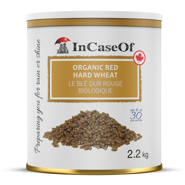 In Case Of Organic Red Hard Wheat is grown on the Canadian Prairies and is an excellent grain to add to your emergency food supply. Use it as a berry in cereal, a sprout, or make fresh-ground flour to add in all your home recipes.