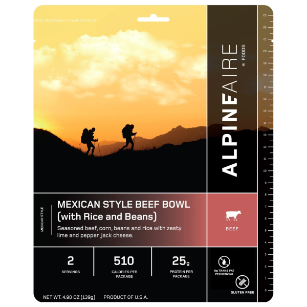 Ingredients | White rice, Black beans, Beef diced cooked freeze dried (beef, salt), Taco seasoning [paprika, corn meal, salt, onion, spices, garlic, tomato, citric acid], Sweet corn, Pepper jack cheese [(pasteurized milk, cheese cultures, salt, jalapeno peppers, enzymes), powdered cellulose (added to prevent caking)], Tomato flakes, Bell pepper red & green combo, Red onion, Sea salt, Crystallized lime (citric acid, natural lime flavor (maltodextrin, sugar, lime oil, lime juice from concentrate, sunflower lecithin, gum arabic, silicon dioxide)], Garlic granulated, Black pepper, Cilantro, Jalapeno. |