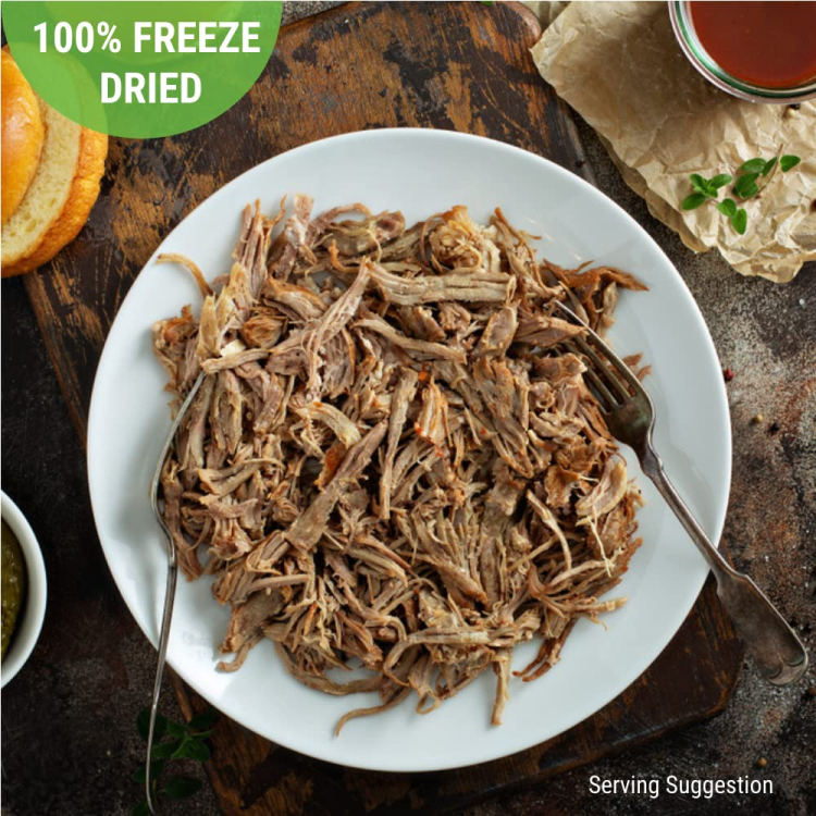 Speed up your kitchen meal prep times with a delicious ready to go meat that your family will love. Fully cooked, freeze dried and lightly seasoned pulled pork - a great source of protein that will keep you wanting more.