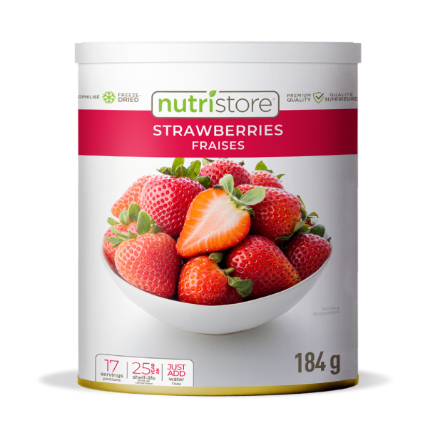 Nutristore™ Freeze-dried Strawberries are an excellent way to obtain essential nutrients. These Strawberries are packed with flavor and nutrients the whole family will love. They taste great out of the can or can easily be reconstituted in minutes and used in your granola, oatmeal or strawberry shortcake. Give yourself access to delicious, nutritious Strawberries year round. You deserve it!