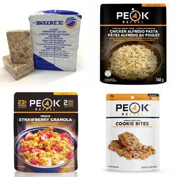 Based on this thinking I've chosen to add a Peak Refuel Mountain Berry Granola to my kit to help me take the edge off day two of food rationing. It's as easy to work with as all I need to do is add two of my Datrex water rations, stir it up with a spork and then I can go ahead and eat. Mmm… this will add 570 calories today too, and offers some much needed variation in taste, nutrition, and texture. Plus, the Peak Refuel pouches again have a 5-year shelf life. Then eating my six daily ration bars and a couple of cookie bites I could easily make it another 24 hours of rationing without too much pain.